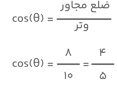 مثال: مقدار کسینوس زاویه θ را در مثلث زیر بهدست آورید.