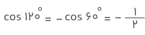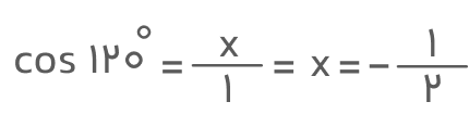 مثال ۱: کسینوس زاویه ۱۲۰ درجه را با کمک زاویه مرجع بیابید.