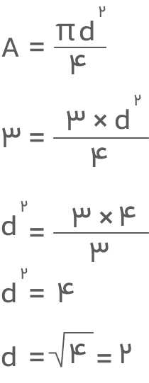برای محاسبه قطر از فرمول مساحت استفاده میکنیم. داریم: