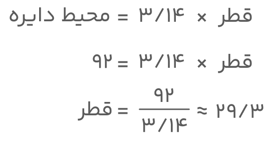 محیط یک ساعت دیواری دایرهای شکل ۹۲ سانتیمتر است. قطر این ساعت را حساب کنید.