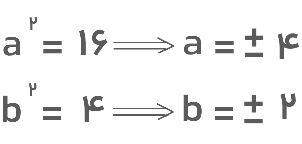 اگر مرکز یک بیضی افقی (۰,۰) باشد، مختصات گوشههای بیضی بهصورت و