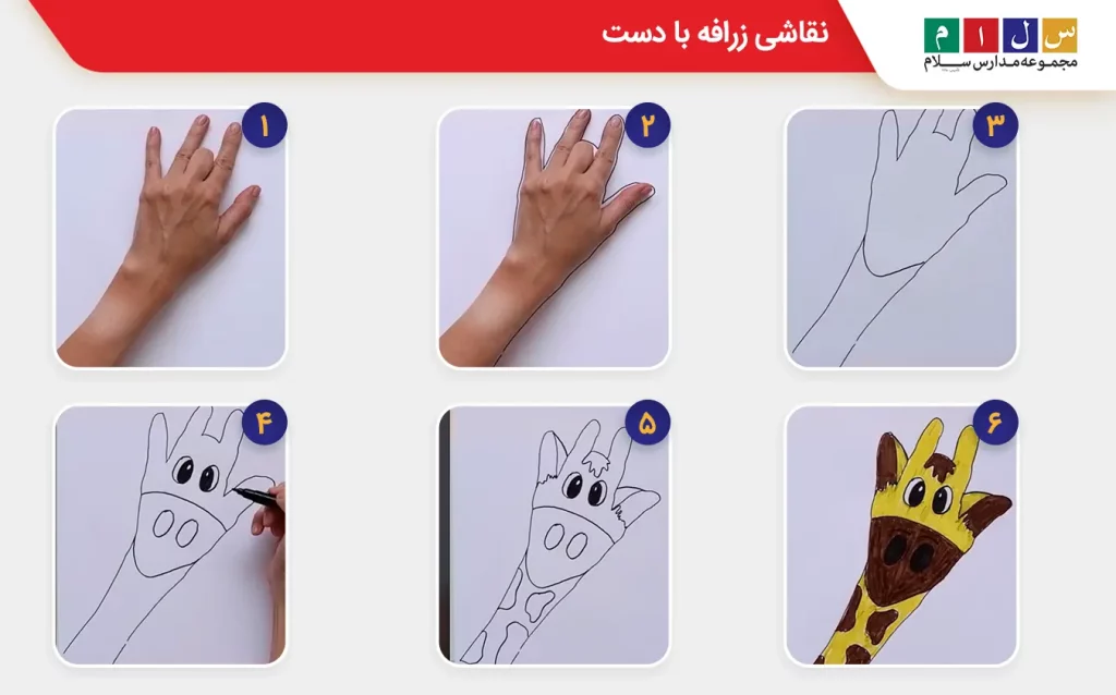 آموزش نقاشی زرافه با دست برای کودکان در 6 مرحله