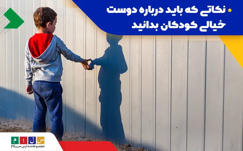 برخی از کودکان در دوره خردسالی یا سنین بالاتر به دلایل مختلف مانند احساس تنهایی، شرم زیاد، تخیل بالا یا در موارد اندکی وجود مشکلات روحی، دوست خیالی دارند. این دوست خیالی میتواند هر شکل و شخصیتی داشته باشد. گاهی از موارد مورد علاقه کودک و گاهی از ترسها و مشکلات کودک منشأ میگیرد. تا زمانی حرف زدن کودکان با فردی خیالی مشکلی برای سلامت روحی و جسمی کودک و دیگران ایجاد نکرده باشد، میتوانید با آن کنار بیایید، حتی درباره دوست خیالی کودک سوال کنید، با و حرف بزنید و چه بسا به صورت غیر مستقیم بتوانید برخی موارد را هم به او آموزش بدهید.