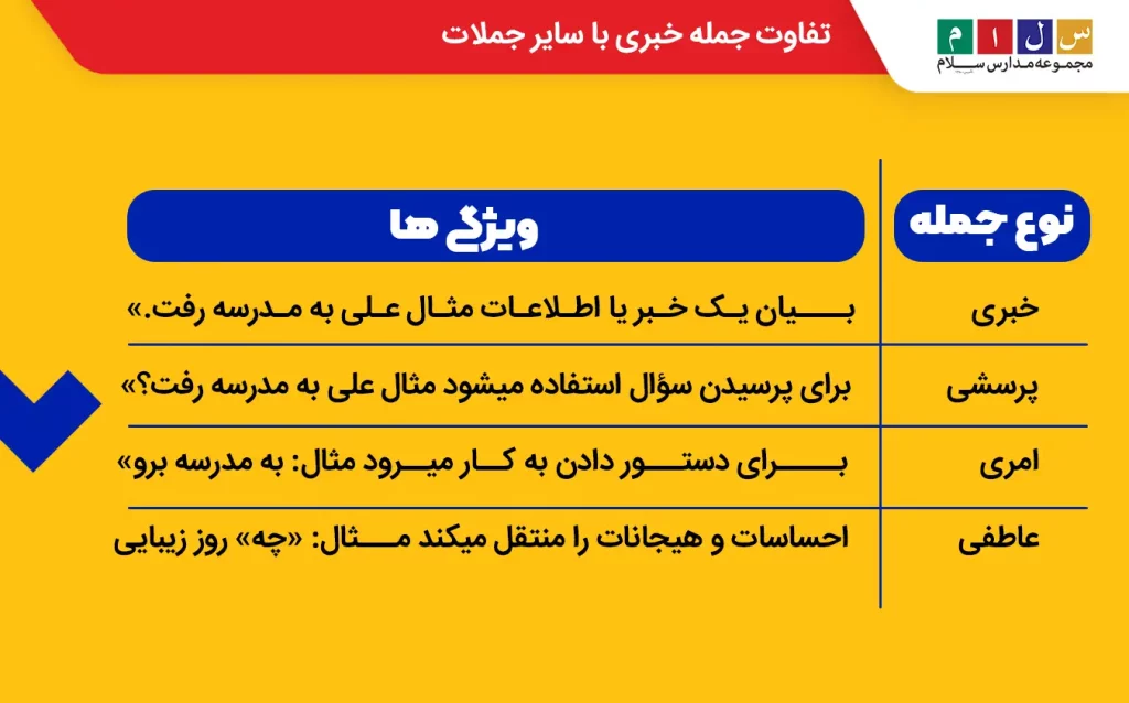 برای اینکه بهتر متوجه شوید جمله خبری چیست، بیایید آن را با انواع دیگر جملات مقایسه کنیم: