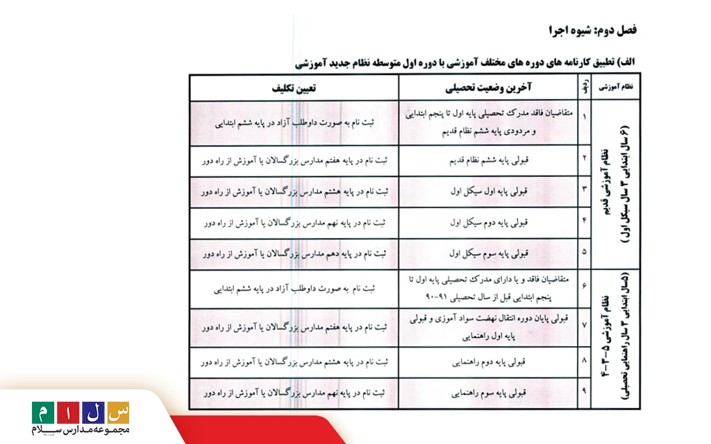 مراحل تطبیق دیپلم نظام قدیم به جدید به شرح زیر است: