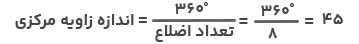 مثال: یک هشتضلعی منتظم چند زاویه مرکزی دارد و اندازه هر یک از آنها چقدر است؟