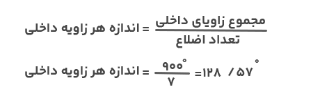 مثال: مجموع زاویههای داخلی یک هفتضلعی منتظم ۹۰۰ درجه است. اندازه هر یک از زوایای داخلی این چندضلعی چقدر است؟
