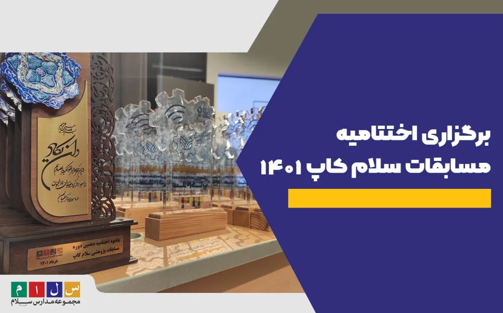 دهمین دوره مسابقات ملی پژوهشی سلام کاپ با معرفی برگزیدگان به کار خود پایان داد. اختتامیه این مسابقات در روز ۱۹ خرداد ماه ۱۴۰۱، ساعت ۱۰ تا ۱۲ برای پسران و ساعت ۱۳ الی ۱۵ برای دختران، در باغ موزه دفاع مقدس برگزار شد.