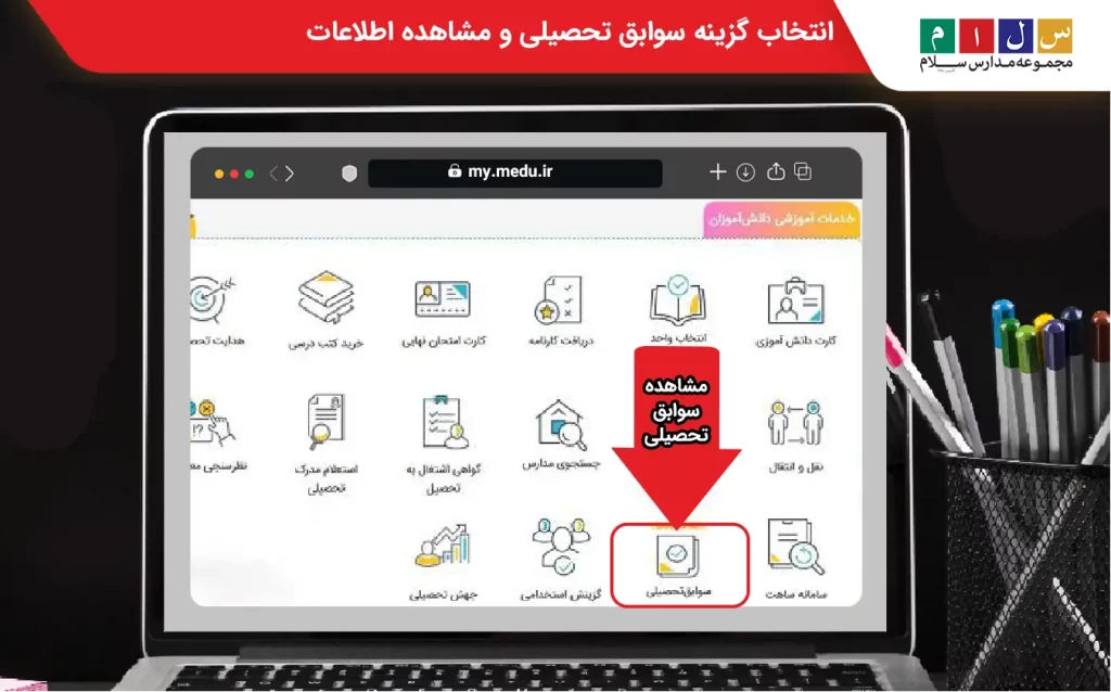 ۳. انتخاب گزینه مشاهده سوابق تحصیلی