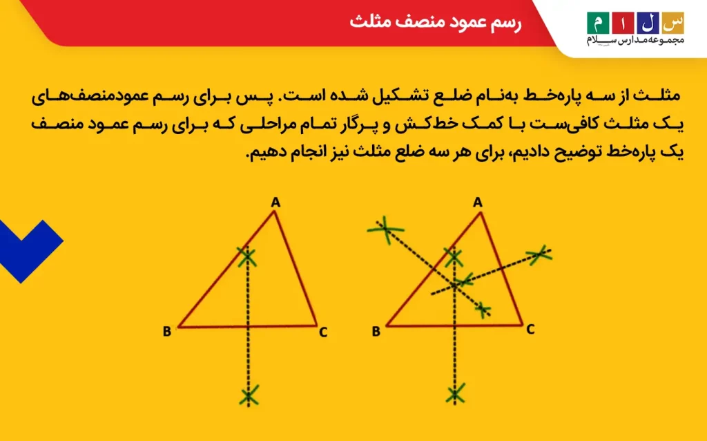 چگونه عمود منصف مثلث را رسم کنیم؟