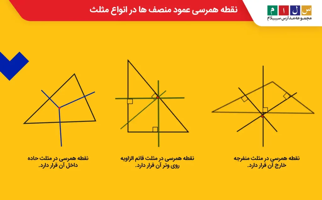 نقطه همرسی عمود منصف ها در انواع مثلث