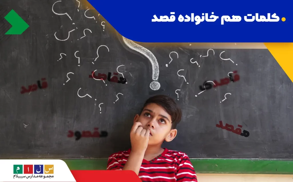 اگر به‌عنوان دانش‌آموز می‌خواهید با کلمات هم خانواده قصد کلاس سوم، کلمه هم خانواده قصد کلاس چهارم و کلمات هم خانواده قصد کلاس پنجم آشنا شوید، با توجه به توضیحاتی که بیان کردیم، کلمات معرفی‌شده در تصویر زیر می‌توانند هم خانواده قصد باشند.